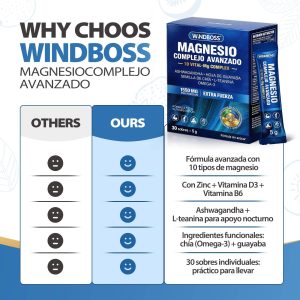 Windboss Magnesium Complex with Ashwagandha, L-Theanine | 30 Sachets